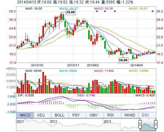 | 今 開: | 19.69 | 成交量: | 5585手 | 振 幅: | 2.54% |
