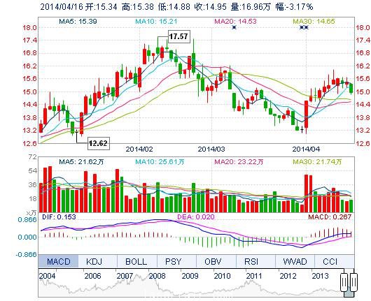 | 今 開: | 15.34 | 成交量: | 16.96萬手 | 振 幅: | 3.24% |