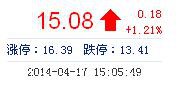 | 今 開: | 14.95 | 成交量: | 2.47萬手 | 振 幅: | 3.22% |