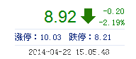 | 昨 收: | 9.12 | 流通市值: | 79.49億 | 市盈率TTM: | 150.49 |