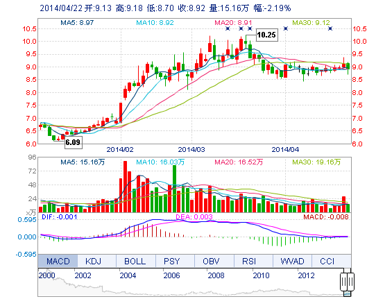 | 今 開: | 9.13 | 成交量: | 15.16萬手 | 振 幅: | 5.26% |