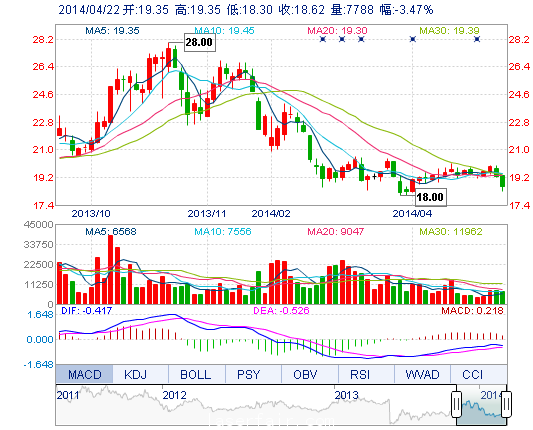 | 今 開: | 19.35 | 成交量: | 7788手 | 振 幅: | 5.44% |