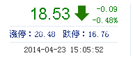 今開: 18.62 成交量: 4851手 振幅: 1.83% 最高: 18.72 成交額: 897.89萬(wan) 元 換手率: 2.24% 最低: 18.38 總市值: 12.97億(yi) 市淨率: 4.44 昨收: 18.62 流通市值:...