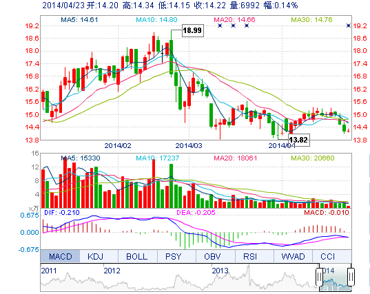 | 今 開: | 14.20 | 成交量: | 6992手 | 振 幅: | 1.34% |