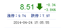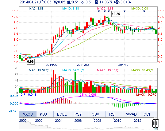 | 今 開: | 8.85 | 成交量: | 14.36萬手 | 振 幅: | 3.84% |
