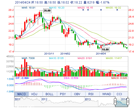| 今 開: | 18.50 | 成交量: | 6219手 | 振 幅: | 2.59% |