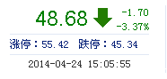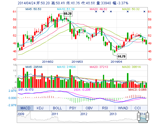 | 今 開: | 50.20 | 成交量: | 3.39萬手 | 振 幅: | 4.21% |
