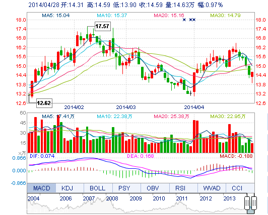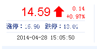 | 今 開: | 14.31 | 成交量: | 14.63萬手 | 振 幅: | 4.78% |