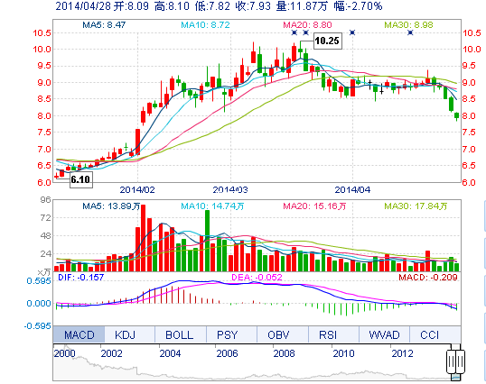 | 今 開: | 8.09 | 成交量: | 11.87萬手 | 振 幅: | 3.44% |