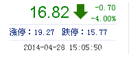 | 今 開: | 17.43 | 成交量: | 6183手 | 振 幅: | 3.65% |