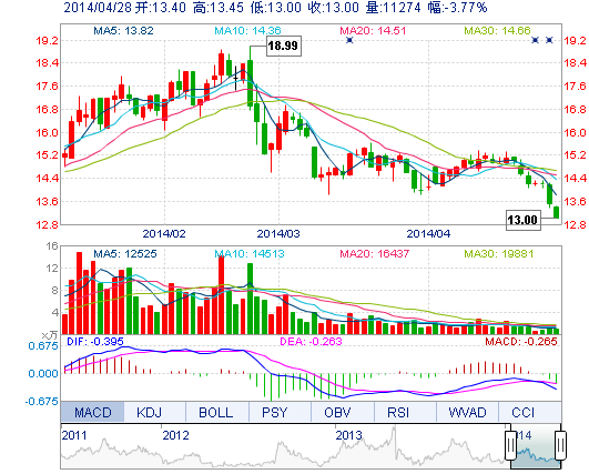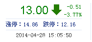| 今 開: | 13.40 | 成交量: | 1.13萬手 | 振 幅: | 3.33% |