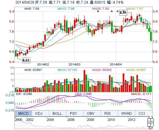 | 昨 收: | 7.60 | 流通市值: | 31.62億 | 市盈率TTM: | -- |