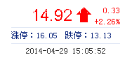 | 最 高: | 15.15 | 成交額: | 3.06億元 | 換手率: | 2.17% |