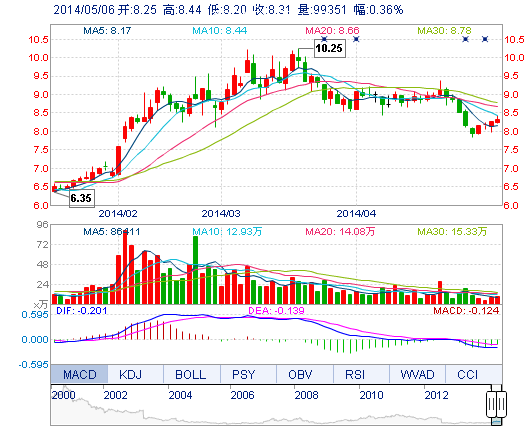 | 今 開: | 8.25 | 成交量: | 9.94萬手 | 振 幅: | 2.90% |