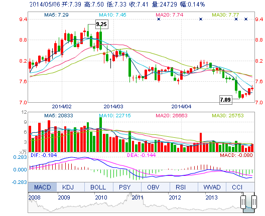 | 今 開: | 7.39 | 成交量: | 2.47萬手 | 振 幅: | 2.30% |