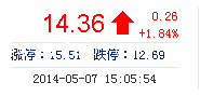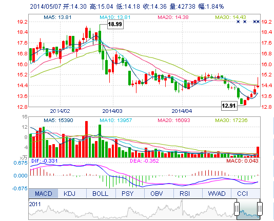 | 今 開: | 14.30 | 成交量: | 4.27萬手 | 振 幅: | 6.10% |