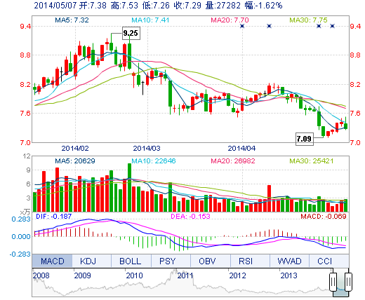 | 今 開: | 7.38 | 成交量: | 2.73萬手 | 振 幅: | 3.64% |