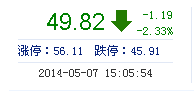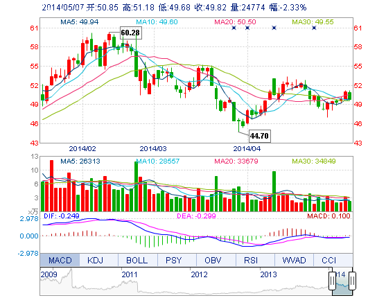 | 今 開: | 50.85 | 成交量: | 2.48萬手 | 振 幅: | 2.94% |