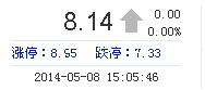 | 昨 收: | 8.14 | 流通市值: | 72.54億 | 市盈率TTM: | 115.17 |