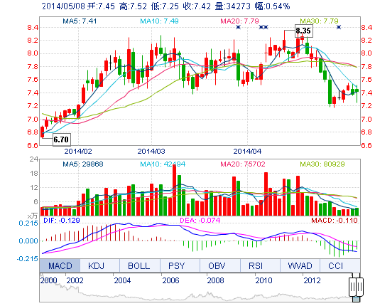 | 今 開: | 7.45 | 成交量: | 3.43萬手 | 振 幅: | 3.66% |