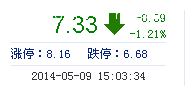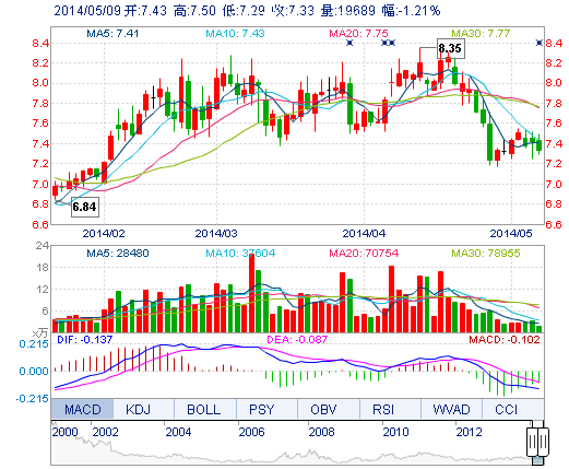 | 今 開: | 7.43 | 成交量: | 1.97萬手 | 振 幅: | 2.83% |