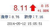 | 最 高: | 8.14 | 成交額: | 8485.77萬元 | 換手率: | 1.18% |