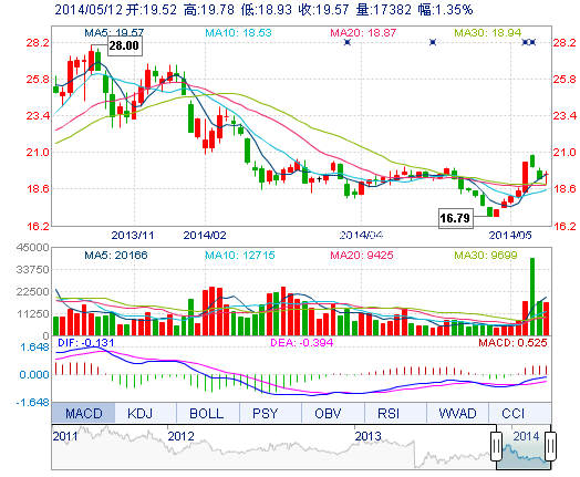 | 今 開: | 19.52 | 成交量: | 1.74萬手 | 振 幅: | 4.40% |