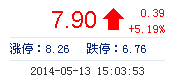 | 昨 收: | 7.51 | 流通市值: | 34.51億 | 市盈率TTM: | -- |