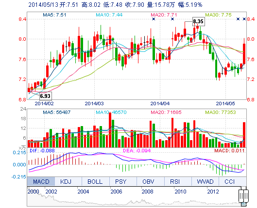 | 今 開: | 7.51 | 成交量: | 15.78萬手 | 振 幅: | 7.19% |