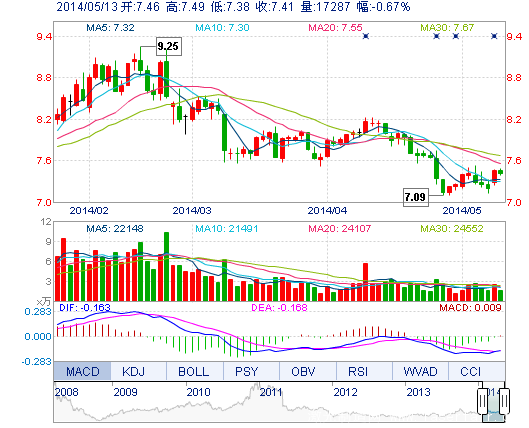 今開: 7.46 成交量: 1.73萬(wan) 手 振幅: 1.47% 最高: 7.49 成交額: 1283.09萬(wan) 元 換手率: 0.63% 最低: 7.38 總市值: 21.12億(yi) 市淨率: 3.29 昨收: 7.46 流通市值: ...
