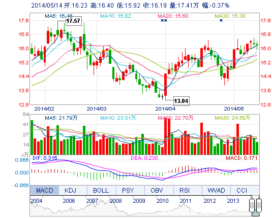 | 今 開: | 16.23 | 成交量: | 17.41萬手 | 振 幅: | 2.95% |
