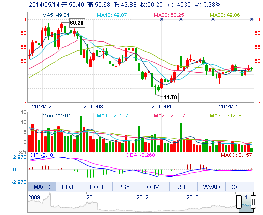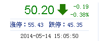 | 今 開: | 50.40 | 成交量: | 1.45萬手 | 振 幅: | 1.59% |