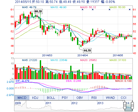 | 今 開: | 50.10 | 成交量: | 1.93萬手 | 振 幅: | 2.49% |