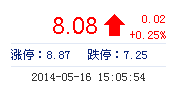 | 最 高: | 8.14 | 成交額: | 6361.20萬元 | 換手率: | 0.89% |