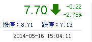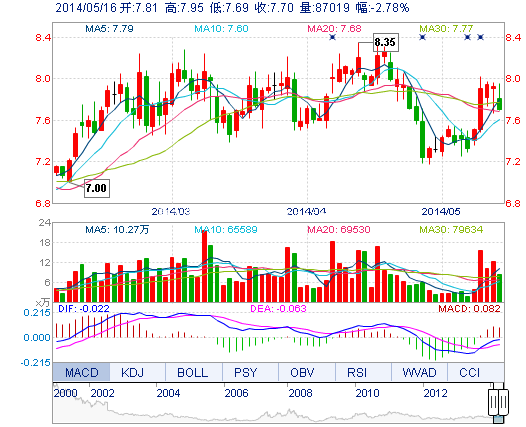 | 今 開: | 7.81 | 成交量: | 8.70萬手 | 振 幅: | 3.28% |
