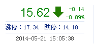 | 最 高: | 15.68 | 成交額: | 9184.60萬元 | 換手率: | 8.70% |