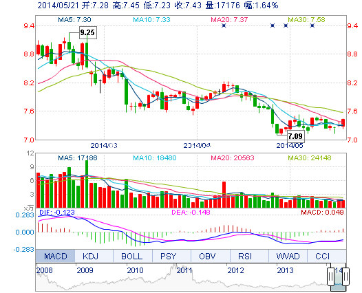 今開: 7.28 成交量: 1.72萬(wan) 手 振幅: 3.01% 最高: 7.45 成交額: 1267.03萬(wan) 元 換手率: 0.62% 最低: 7.23 總市值: 21.18億(yi) 市淨率: 3.30 昨收: 7.31 流通市值: ...