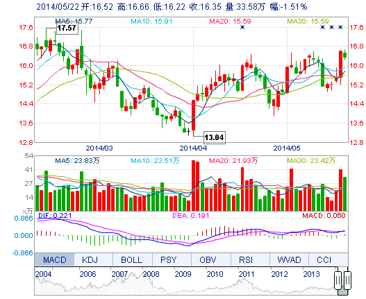| 今 開: | 16.52 | 成交量: | 33.58萬手 | 振 幅: | 2.65% |