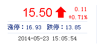 | 最 高: | 15.56 | 成交額: | 5126.62萬元 | 換手率: | 4.89% |