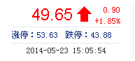 | 最 高: | 49.80 | 成交額: | 1.14億元 | 換手率: | 0.81% |