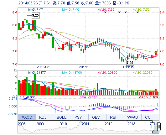 今 開: | 7.61 | 成交量: | 1.70萬手 | 振 幅: | 1.84% |