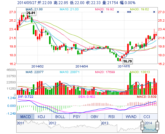 | 最 高: | 22.85 | 成交額: | 4865.50萬元 | 換手率: | 9.95% |