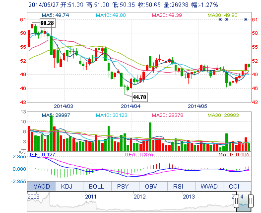 | 最 高: | 51.30 | 成交額: | 1.37億元 | 換手率: | 0.93% |