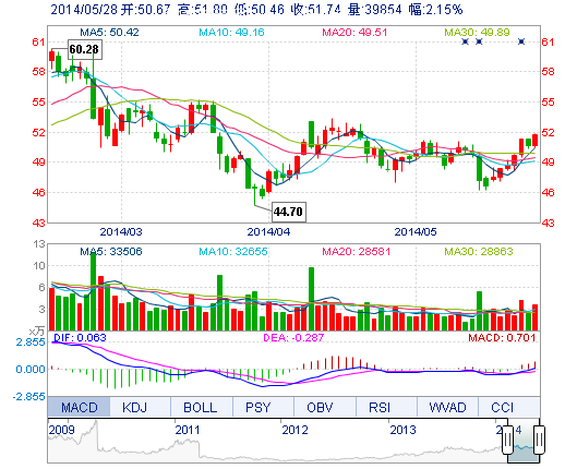 | 最 高: | 51.80 | 成交額: | 2.05億元 | 換手率: | 1.38% |