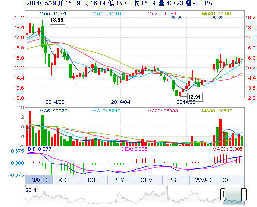 | 今 開: | 15.89 | 成交量: | 4.37萬手 | 振 幅: | 2.88% |