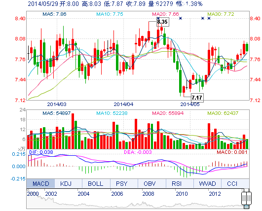 | 今 開: | 8.00 | 成交量: | 6.23萬手 | 振 幅: | 2.00% |