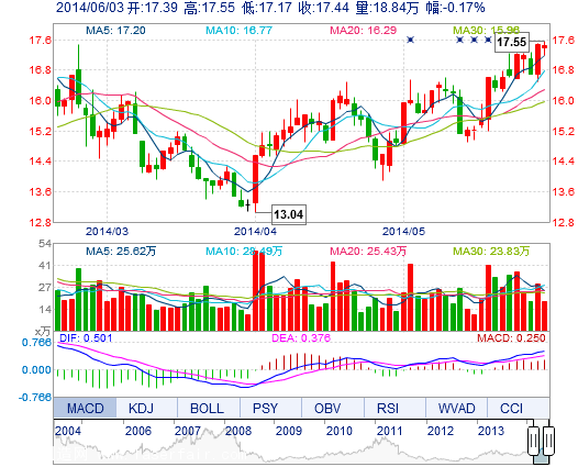 | 最 高: | 17.55 | 成交額: | 3.28億元 | 換手率: | 1.97% |