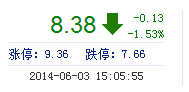 | 今 開: | 8.52 | 成交量: | 6.53萬手 | 振 幅: | 2.59% |