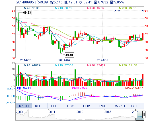 | 最 高: | 52.45 | 成交額: | 3.48億元 | 換手率: | 2.35% |