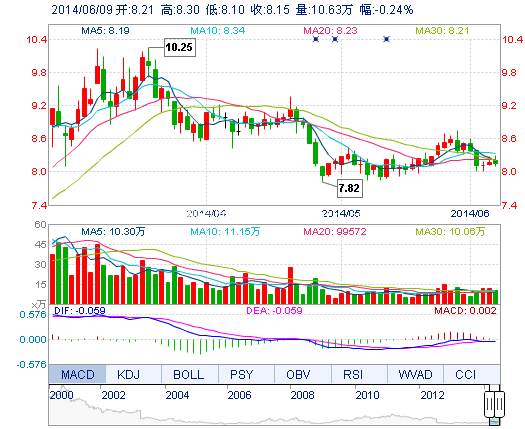 | 今 開: | 8.21 | 成交量: | 10.63萬手 | 振 幅: | 2.45% |